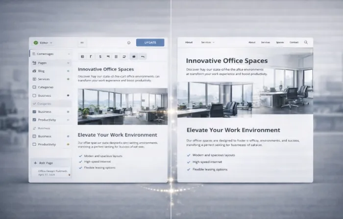 - Hosting plans, server settings, and workflows are configured within the system.